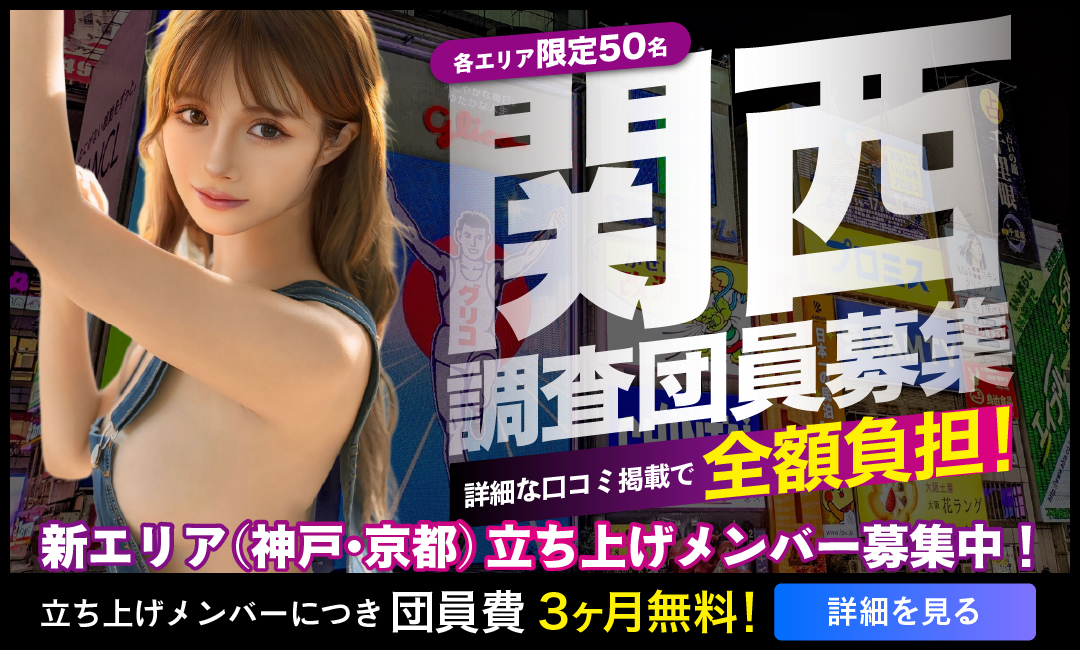 関西エリアの調査範囲拡大に伴い調査団員の募集を行っています。 新エリアは神戸と京都 女性の詳細な口コミを書いていただく代わりにカクブツが風俗代を全額支給します。