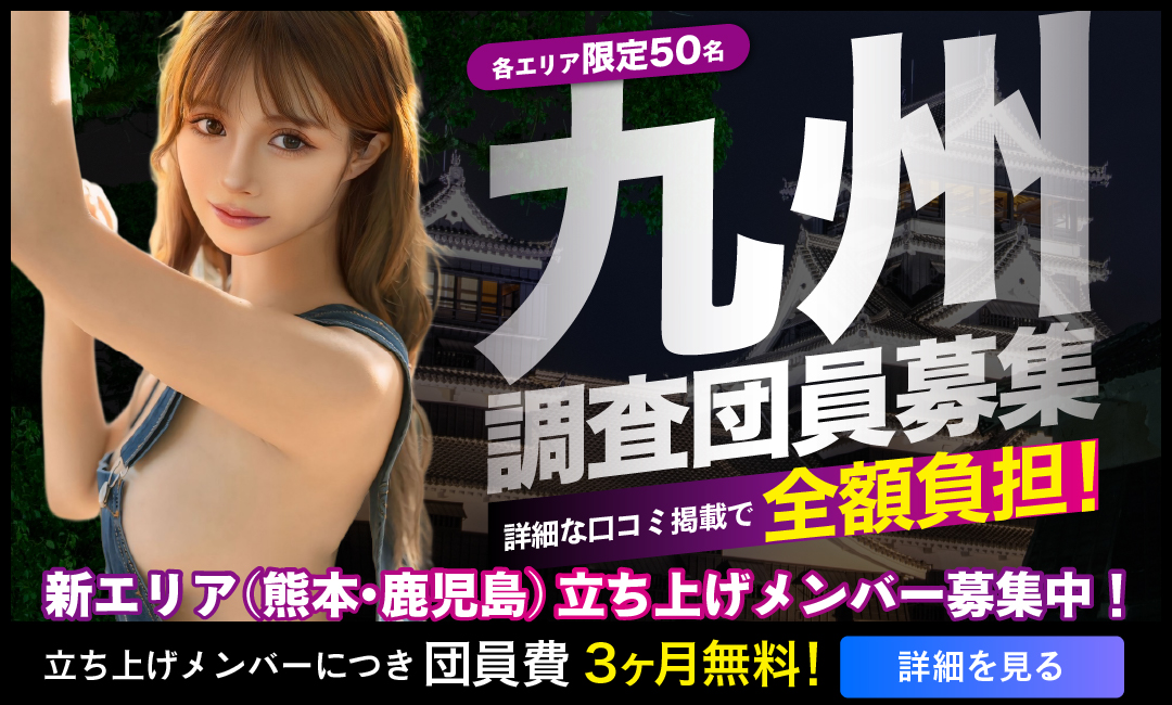 九州エリアの調査範囲拡大に伴い調査団員の募集を行っています。新エリアは熊本と鹿児島 女性の詳細な口コミを書いていただく代わりにカクブツが風俗代を全額支給します。